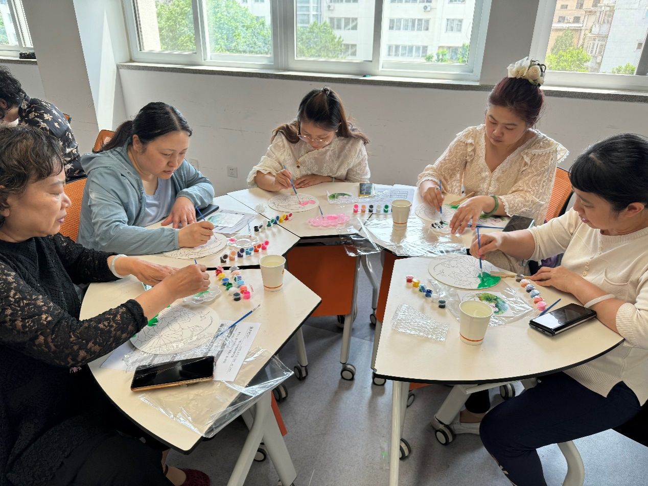 团扇作为中国传统文化的代表之一,其独特的艺术魅力和文化内涵深受人们喜爱。在动手画团扇活动中,教职工们欢聚一起、跃跃欲试,纷纷拿起画笔,用细腻的笔触描绘出栩栩如生的花朵,用大胆的色彩和线条表达内心的情感,一笔一划,在团扇上勾勒着心中的美好愿景。
