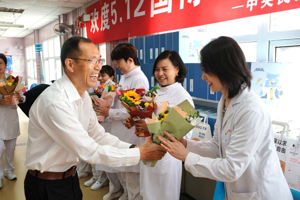 慰问团队为医护人员精心准备了鲜花和节日礼物,表达了校党委对全体医护人员的关爱与关怀!