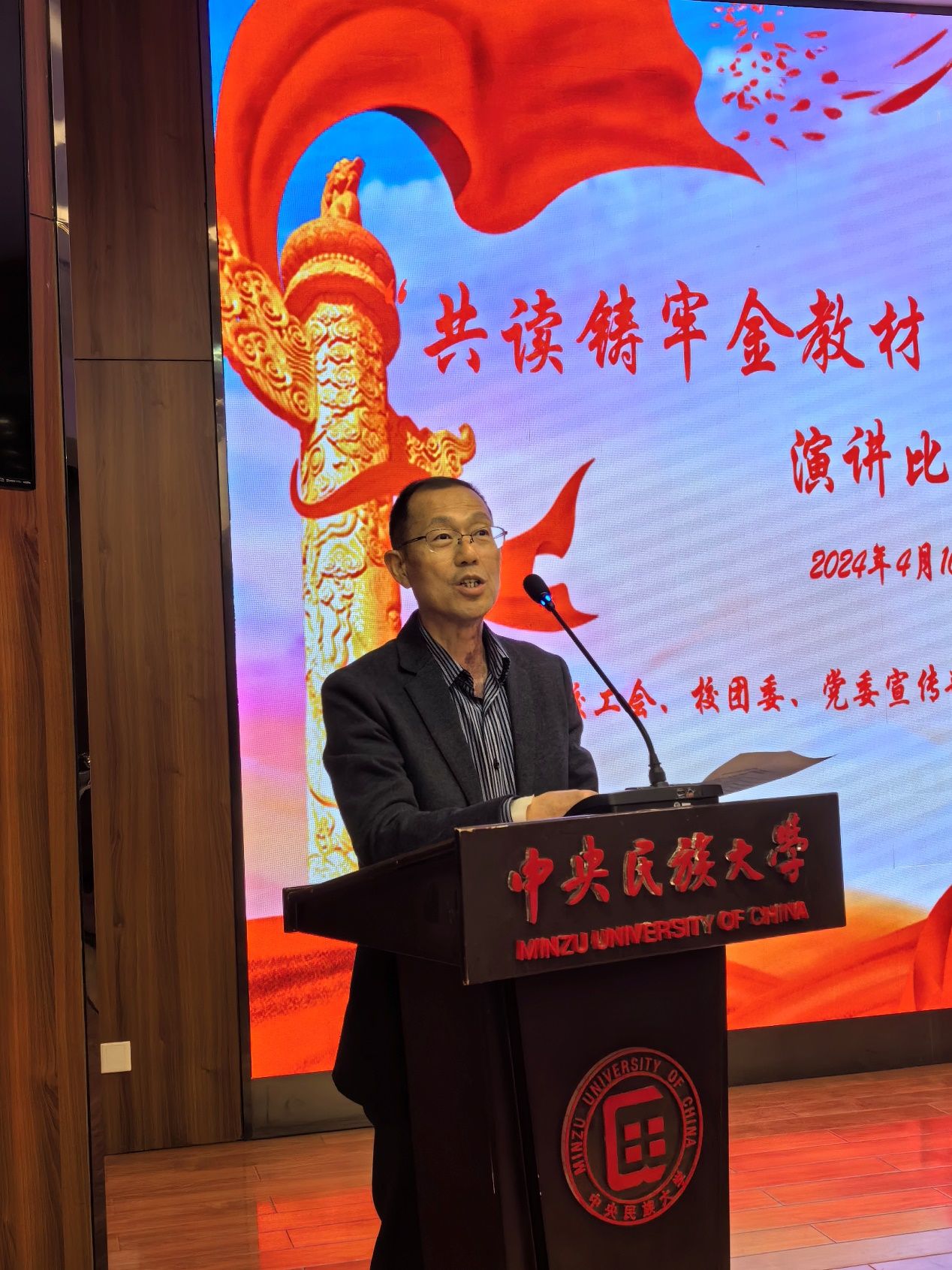 活动伊始,校党委副书记、工会主席邹吉忠发表了鼓舞人心的开场致辞。他强调 “读好金教材”对提升教育教学质量的重要性,他指出要讲好中华民族共同体故事、树立标杆,教育引导学生树立正确的国家观、历史观、民族观、文化观、构建中华民族共有精神家园,扎实推进民族团结进步事业,加强我校师生间的交往交流交融,让学生在学校的中华民族大家庭中守望相助、团结和睦,切实推动铸牢中华民族共同体意识在中央民族大学校园里落地生根,开花结果。他预祝参赛选手能够赛出水平、赛出风格,展现出新时代教师的风采。
