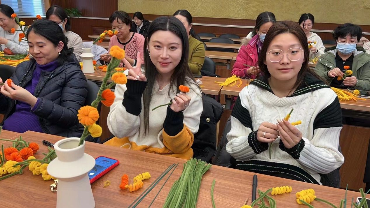 在“柿柿如意扭扭花”活动开始前,校工会常务副主席王淼首先感谢大家对工会活动的高度关注并指出,如今越来越多的优秀女性成为各项工作岗位的骨干力量,独当一面,为全面建设社会主义现代化国家而努力奋斗,贡献巾帼力量,在这个独属于女性的节日里,祝福每一位女教职工更加健康快乐,美丽自信!活动中,女教职工积极参与,发挥自己的想象和动手能力,完成了一个又一个“柿柿如意”作品。在制作过程中她们体验到做手工的快乐,互帮互助,重返童年时光。活动结束时大家意犹未尽,纷纷表示希望多举办此类活动。