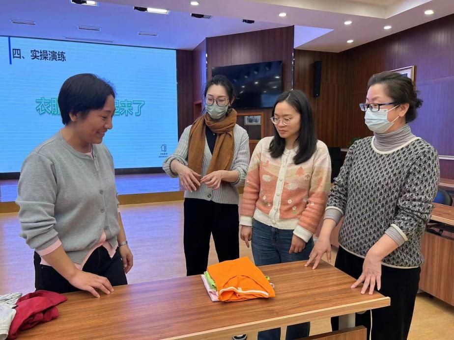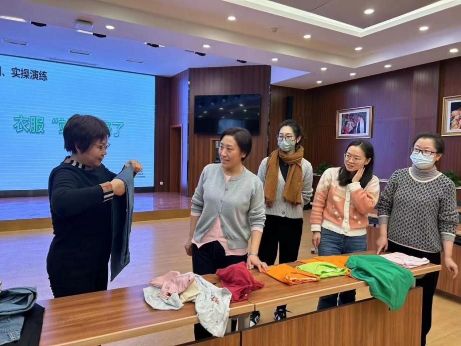 【图12 党委常委总会计师张艳丽参与活动,学习叠衣服方法】