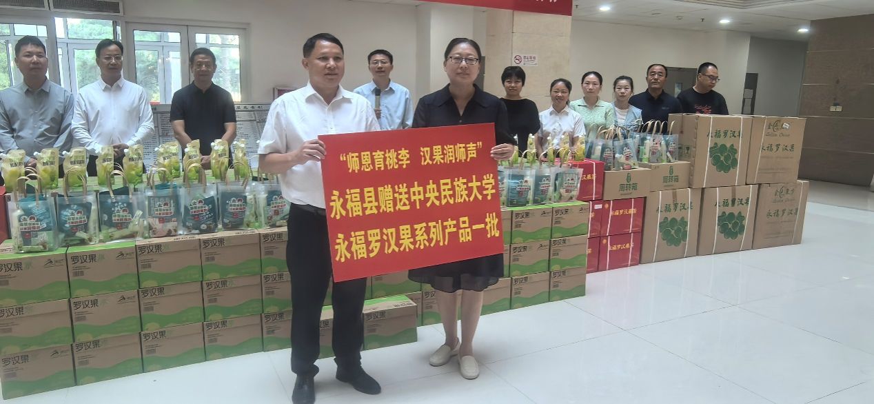 永福县作为“中国长寿之乡”和“中国罗汉果之乡”,其出产的罗汉果素有“东方神果”美誉,具有清咽润肺、生津止渴的保健功效。此次慰问活动既是对我校奋战在铸牢中华民族共同体意识工作主线上全体教职工的诚挚祝福!也是深化政校合作、共谋发展的生动实践。教职工们纷纷表示,这份独具匠心的节日礼物既暖心又实用,切实感受到了来自学校党委送来的清润关怀,陪伴教师们度过了一个健康愉悦的节日!